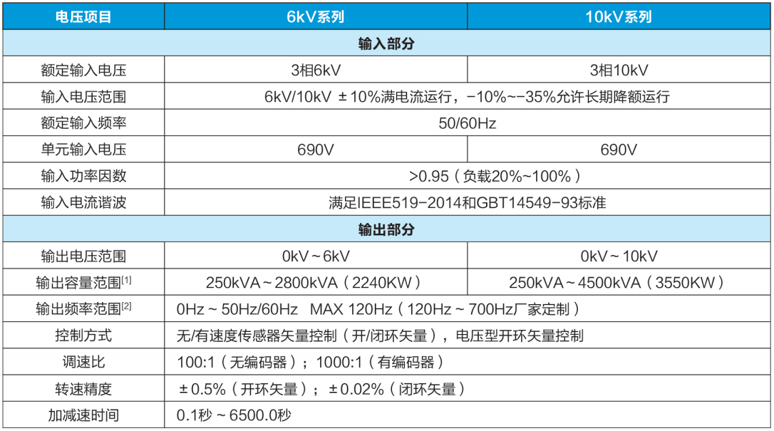 ◆变频器为电压源型、功率单元串联、高一高方式的变频器,全部功率单元分为数量相同的三组,组内串联,机芯包含全部器件上电即可用